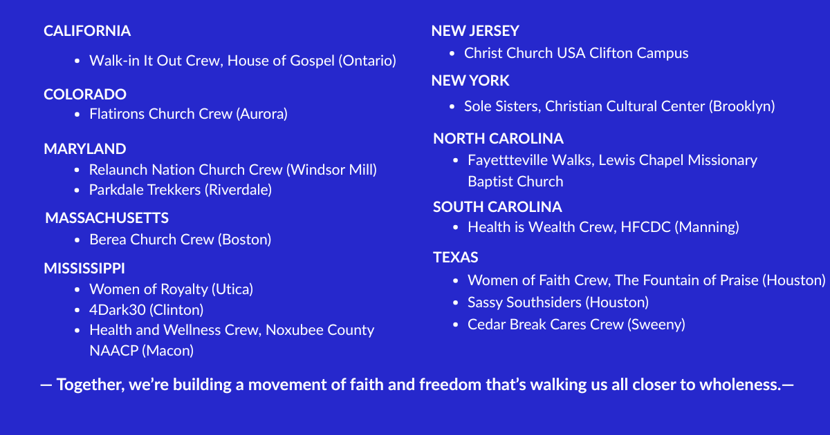 From Chicago to Jackson, from Atlanta to Fresno, Faith Took the Lead. You built bridges across generations and traditions—reminding us that when women unite in purpose, the world moves toward healing. From the Northeast’s vibrant faith hubs to Southern sanctuaries and Midwestern pews, women of faith took to the streets in sacred solidarity. Our greatest surge of impact came from the Northeast region — where churches, mosques, and community centers linked arms with GirlTREK to put faith in motion and love in action.
