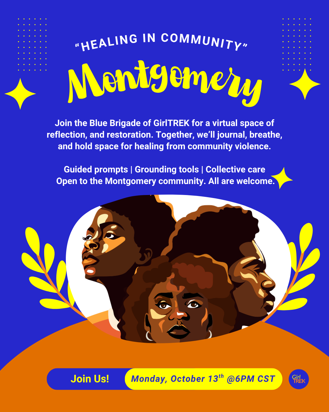 The Blue Brigade of GirlTREK invites you to join us for Healing in Community — a virtual space of reflection and renewal following the recent tragedy in our city.